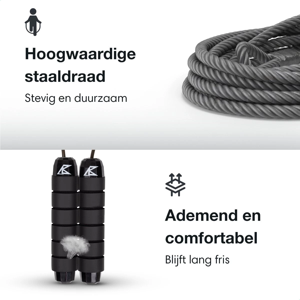 ✓ Een zacht en luchtig handvat – De handgrepen van het springtouw zijn gemaakt van zacht foam. Dit materiaal ligt comfortabel in de hand en ademt goed door wanneer je zweet.