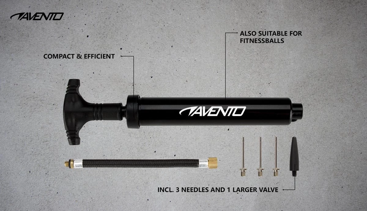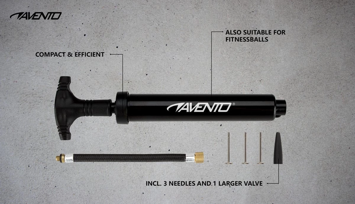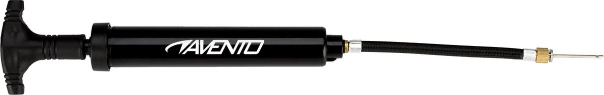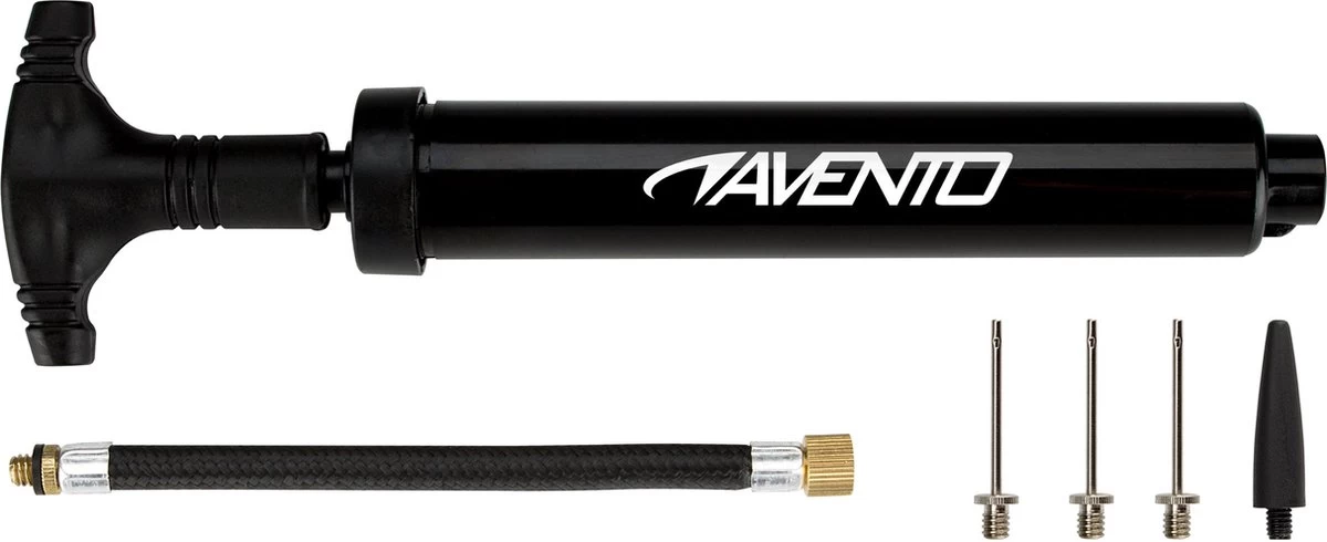 Met deze luxe Avento double action pomp heb je iedere bal (o.a. voetbal, basketbal, volleybal) zo opgepompt. Je blaast lucht in de bal bij op- én neerwaartse beweging, waardoor ballen sneller en gemakkelijker opgepompt worden. De duurzame, lichte pomp is van kunststof en dus makkelijk mee te nemen. Het bijgeleverde verlengstuk voorkomt afbreken van het naaldventiel en mocht dat onverhoopt toch gebeuren dan zijn er nog twee extra naaldventielen beschikbaar.