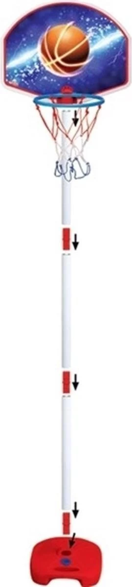 De basketbalring is verstelbaar in 3 hoogtes, namelijk: 76, 116 en 155 cm. Het voetstuk is met water of zand te vullen zodat het stevig blijft staan.