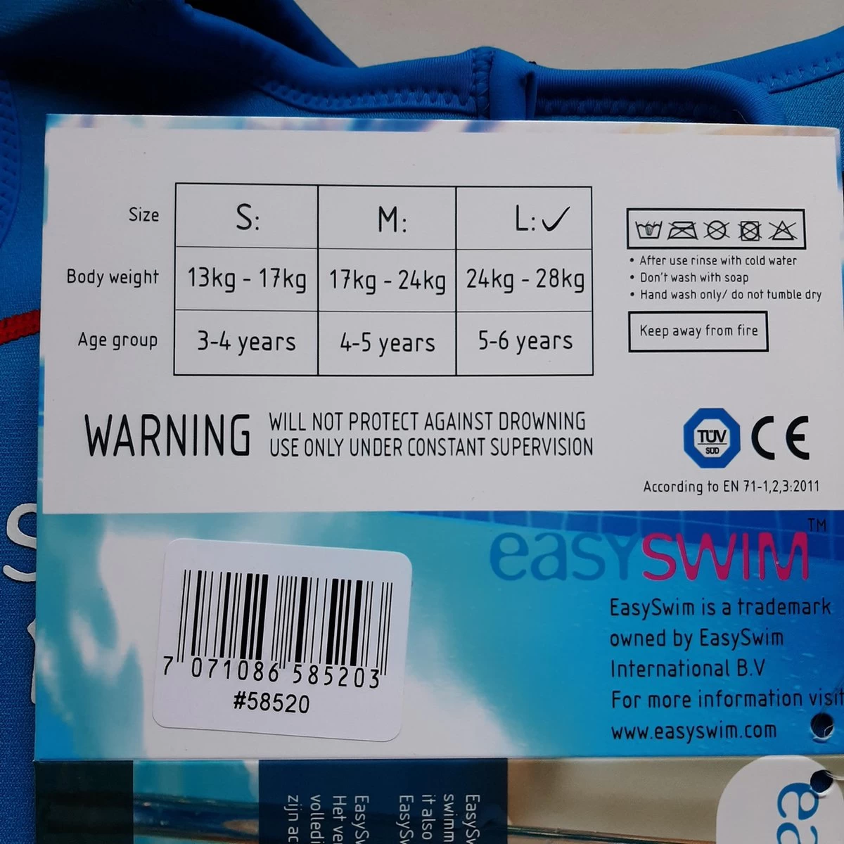 Het EasySwim Fun zwemvest is bedoeld voor recreatief gebruik. Een zwemvest is een zwemhulpmiddel en géén reddingsvest. Kinderen moeten trappelen in het water om boven te blijven. Door te trappelen kan je kind drijven en spelenderwijs leren zwemmen. Indien nodig zul je je kind moeten ondersteunen, totdat hij/zij geleerd heeft om zelfstandig te blijven drijven. Blijf ook dan à ltijd binnen een armlengte van je kind!