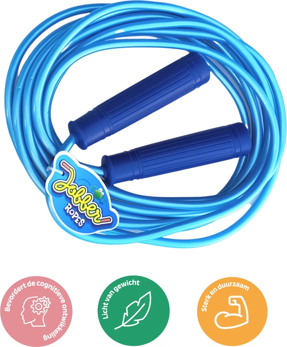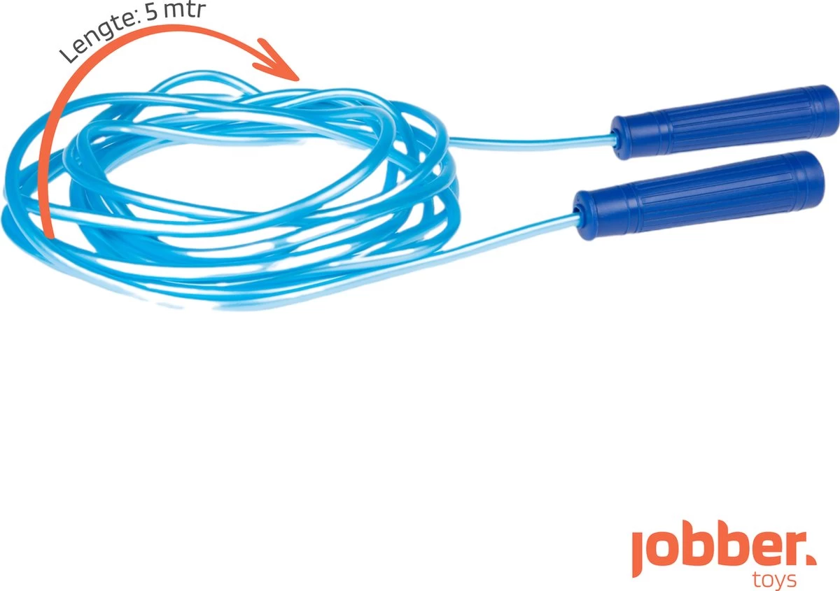 Dit Jobber 5 meter lang springtouw is de gaafste in zijn soort! De felle kleur valt lekker op. Het touw is dik genoeg zodat het goed draait en lekker lang meegaat. Door zijn lengte is dit lang springtouw geschikt om met meerdere kinderen te springen. “In spring de bocht gaat in, uit spuit de bocht gaat uit!”