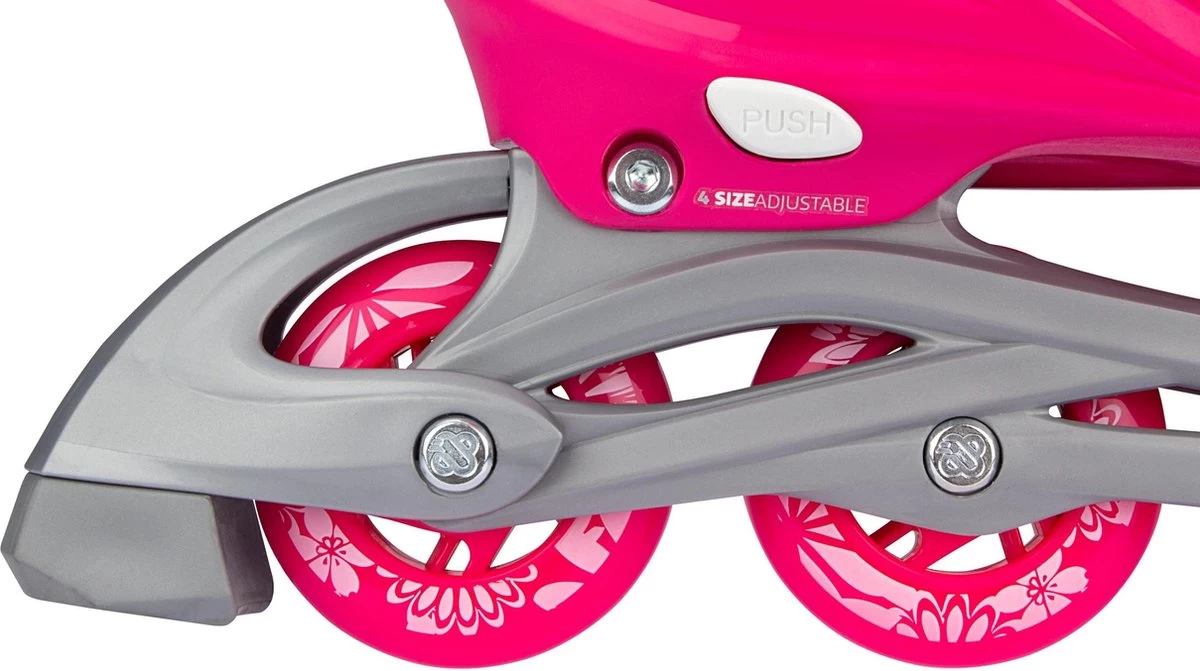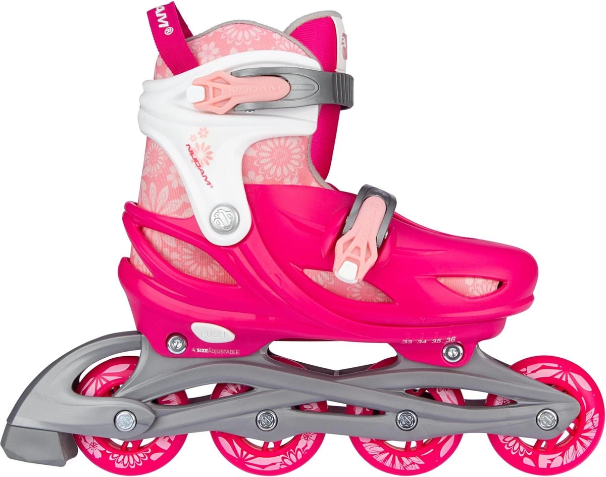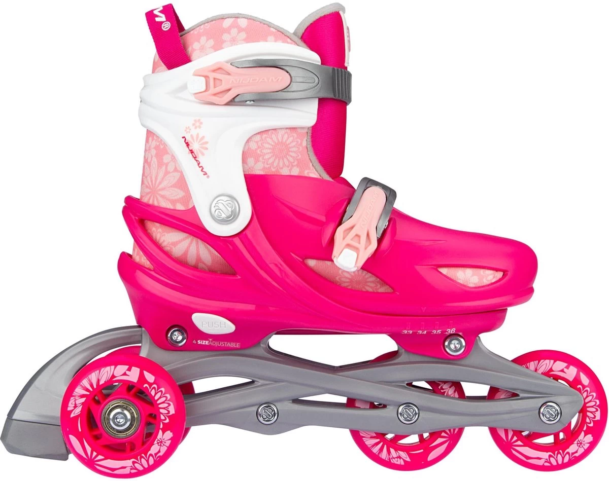 Leer skaten met de Nijdam Floral Switch 3-in-1 verstelbare inline skates! In een handomdraai kun je de positie van de wielen veranderen om van een stabiele quad een trike of skeeler te maken! Het stevige hardboot-ontwerp biedt voldoende ondersteuning voor de voet en enkel en kan tegen een stootje. De maat van de schoen is tevens verstelbaar, zodat je na het leren skaten je Floral Switches nog jarenlang kunt blijven gebruiken – elke dag opnieuw! Yesssss!