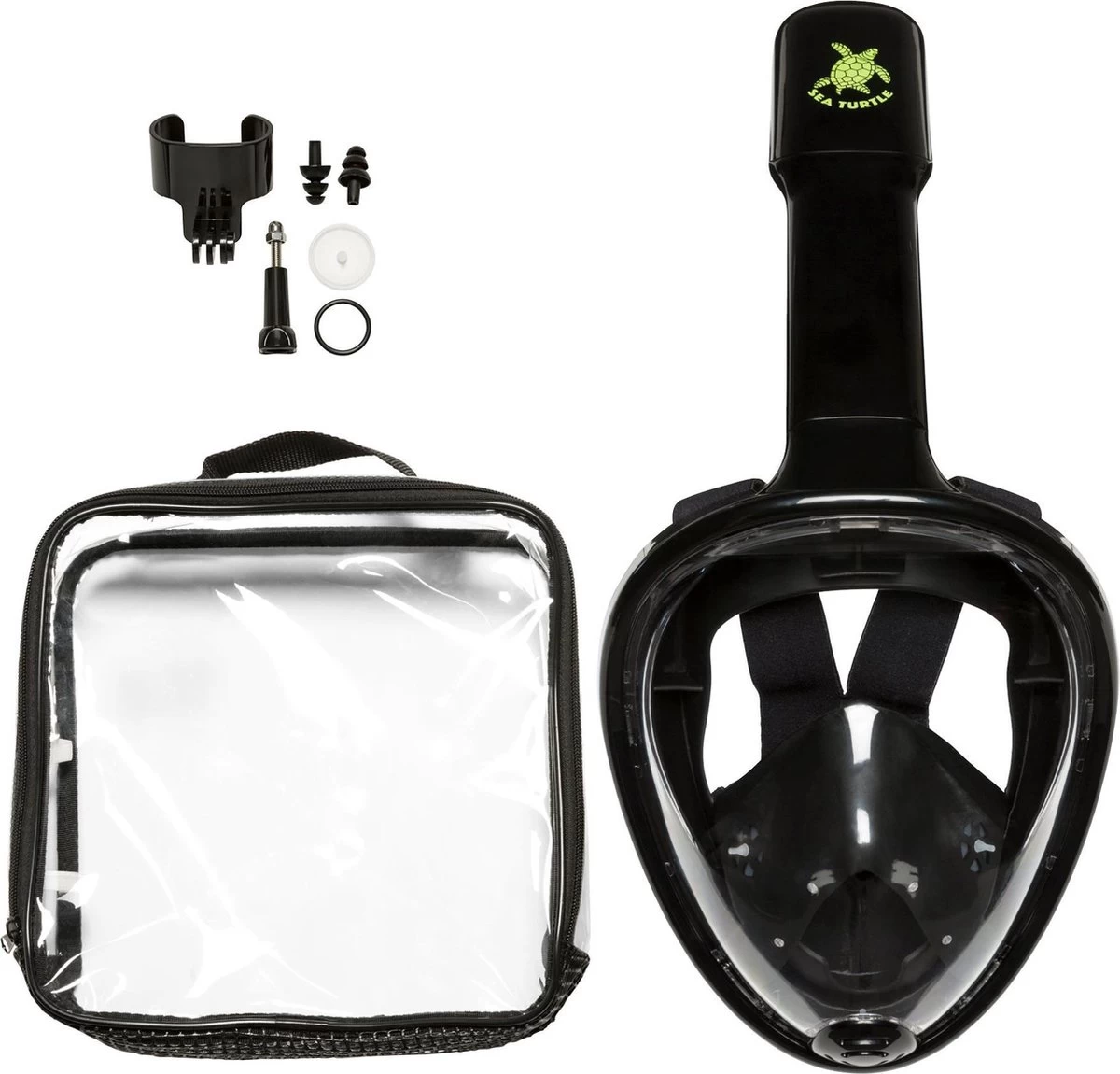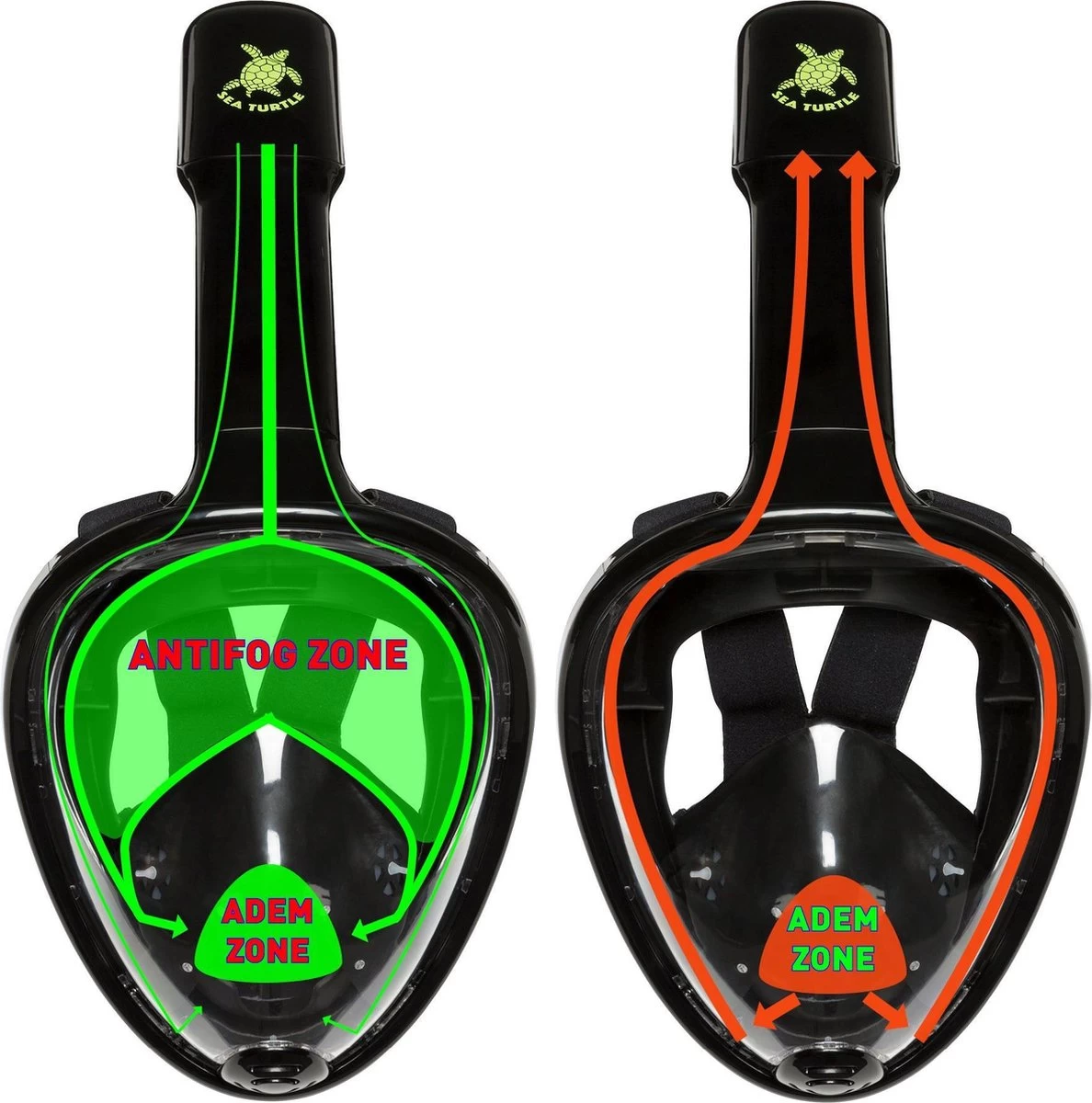 Het Sea Turtle snorkelmasker is geschikt voor snorkelen aan de wateroppervlakte. Door het unieke ontwerp van dit full face masker adem je gewoon door je neus en mond. Ga je onder water dan sluit de dry top af waardoor er geen water in je snorkelmasker komt.