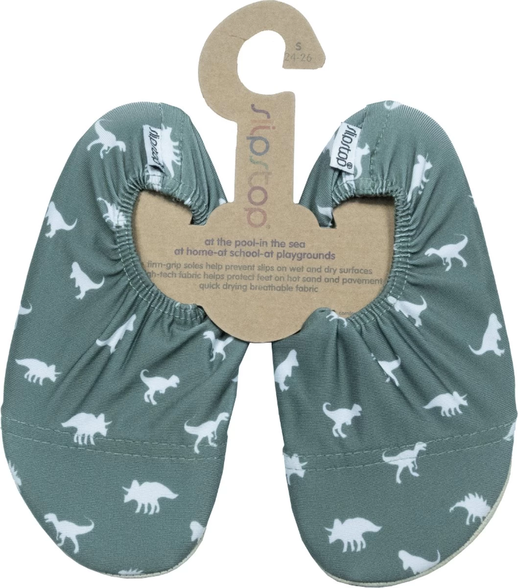 Slipstop Dino – Groen met witte dinosaurussen Deze variant van de Slipstop Dino is nieuw in de collectie. Maar zeker weten dat dit 1 van de favoriete Slipstop waterslofjes wordt onder de jongens. Want dino’s en stoer groen of blauw is natuurlijk altijd punten scoren bij jongens. Toch?!