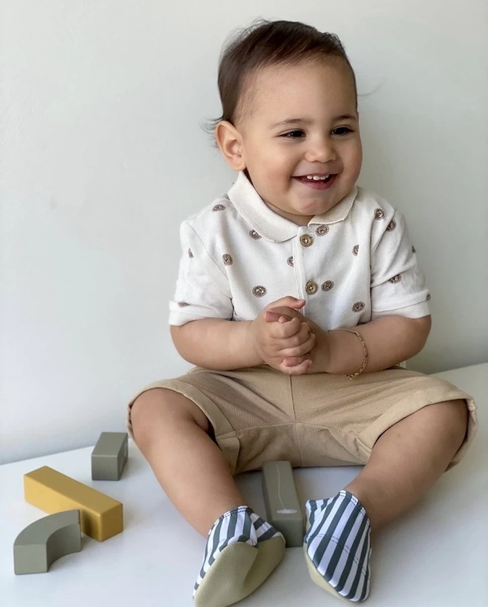 Slipstop groen wit gestreepte watetrschoentjes zijn praktisch voor baby en kind met multifunctionele gebruiksmomenten. Je kan de Slipstops gebruiken op zowel natte als droge ondergronden. Zowel binnen als buiten zijn de Slipstop shoes een goede keuze. Je kleintje heeft grip tijdens het rennen en spelen en door de zool is het voetje beschermd tegen prikken en hete tegels, zand en kunstgras.