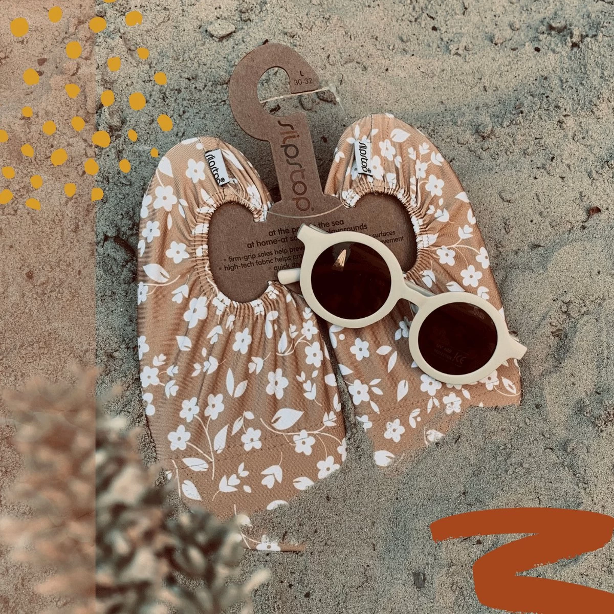Slipstop Mosterd Flower – Oker met witte bloemen, schattige voor meisjes Oker kleurige zwemschoentjes met een wit schattig bloemen printje! Deze hippe kleur slipstopsshoes kunnen goed onder de zwem outfitjes van dit seizoen.